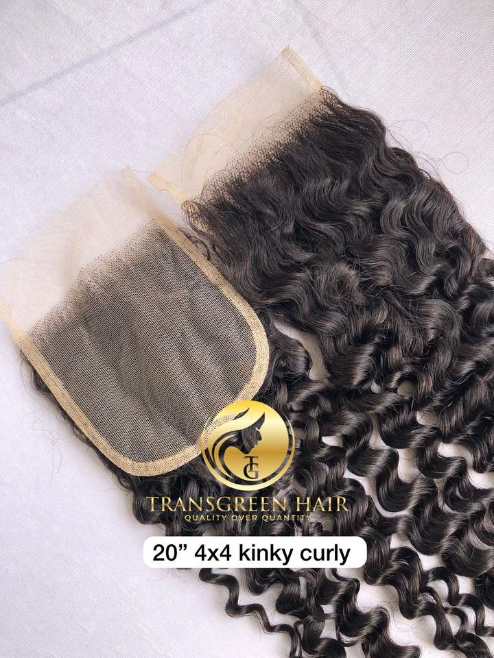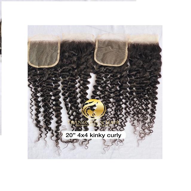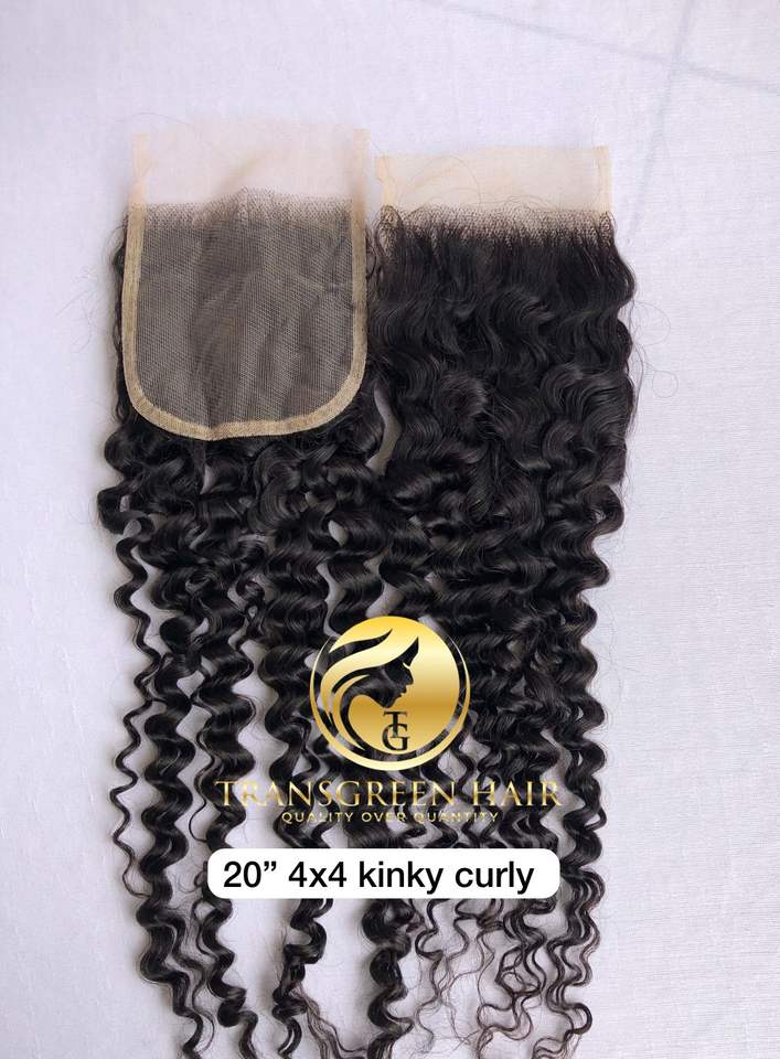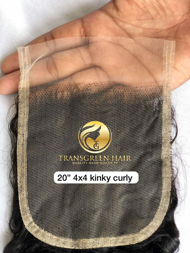 Best Quality Factory Wholesale Price 20" 4x4 Kinky Curly Closure Indian Virgin Human Hair Extension's Lace Closure Indian Vendor