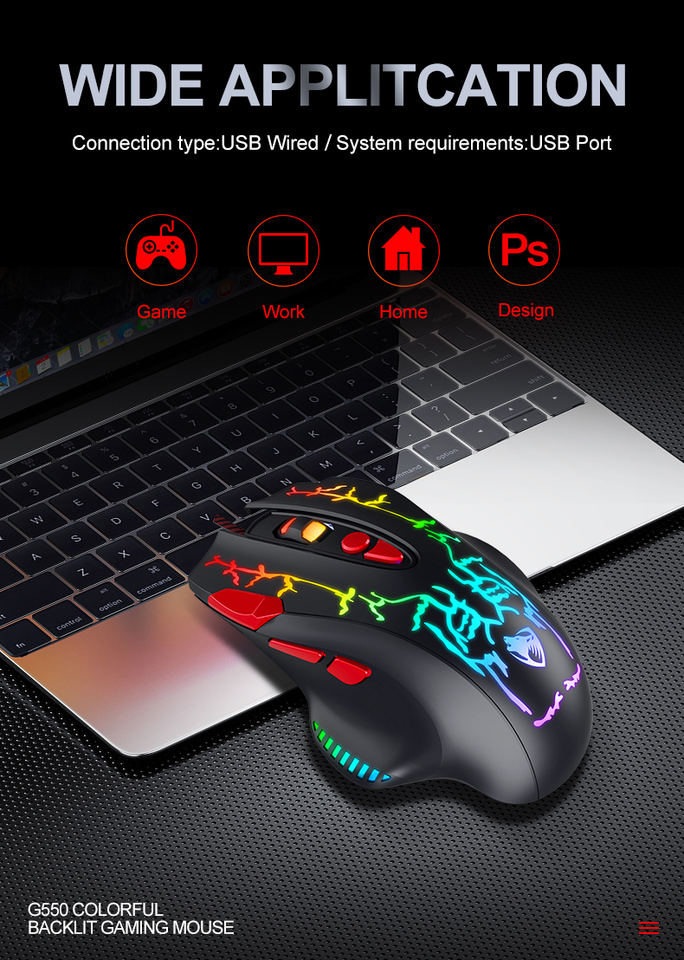 Best Quality G550 LED Backlit Vertical High DPI Gaming Mouse with Multiple Functions Slim Design for Computer