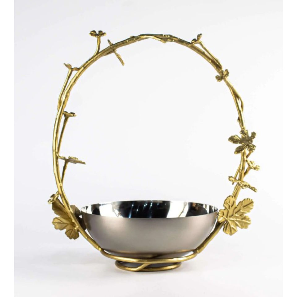 Best Quality Gold Metal Stainless Steel Bowl New Attractive Home Decorative Chocolate Serving Bowl With Leaf Design Handle