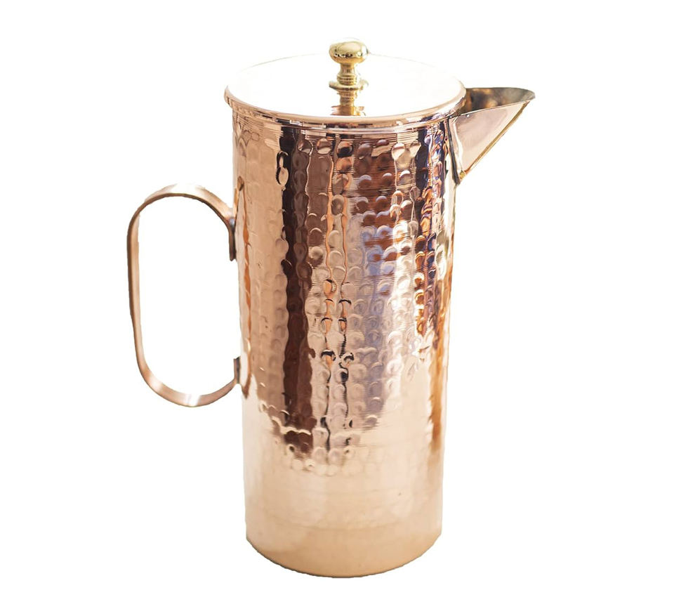 Best Quality Handcrafted Hammered Design Water Pitcher Pure Copper Jug Lid Home and Kitchen Used.