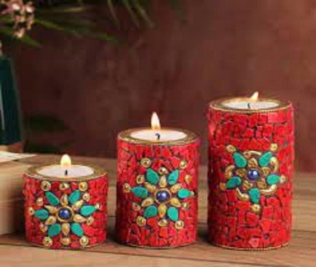 Best Quality Handcrafted Wood Candle Holders with Stone and Resin Inlay Large Small Sizes for Weddings Christmas by GM Impex