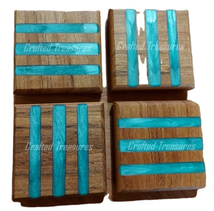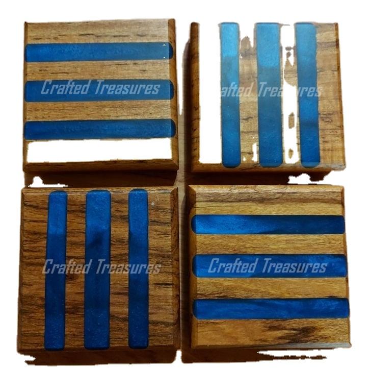Best Quality Handicrafts Epoxy Resin Coaster Handmade Wooden Drink Tea Table Decor Coasters Set of 4 Acacia Wood Coasters