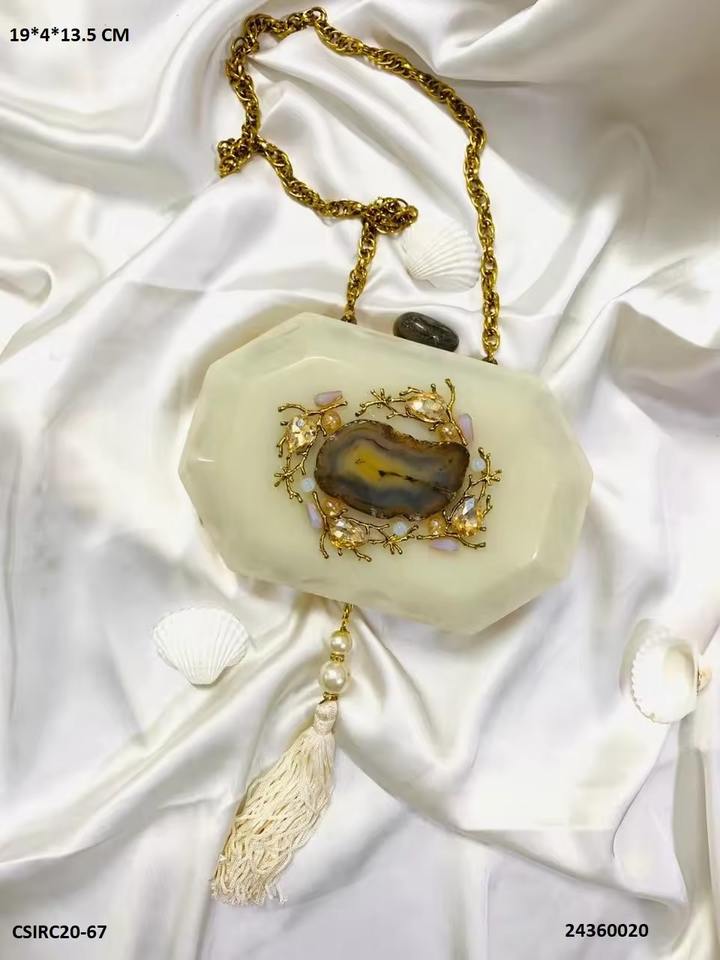Best Quality Handicrafts Round Handbag / Clutch Bag /ladies Purse Mosaic Metal Stone Summer Beach 2024 Hot Selling Women 100pcs