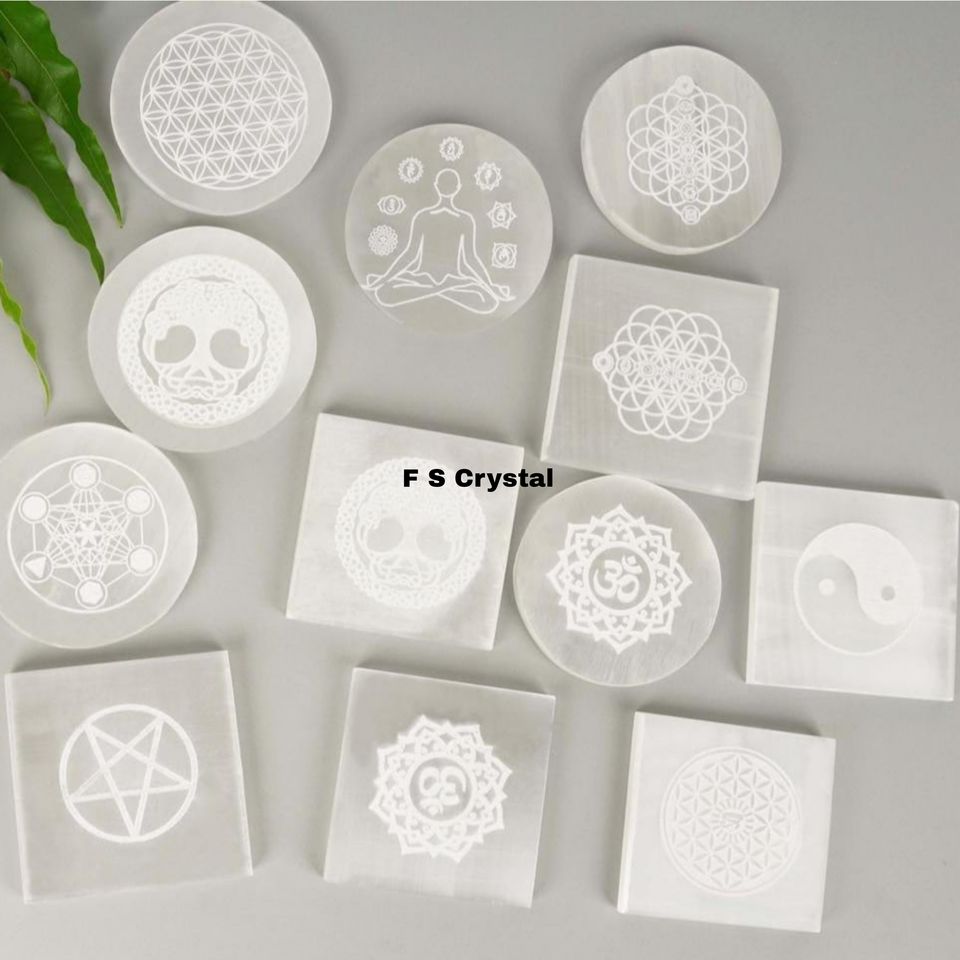 Best Quality Handmade Agate Coasters Selenite and Crystal Gemstone Coaster with Carving Wholesale From F S CRYSTAL