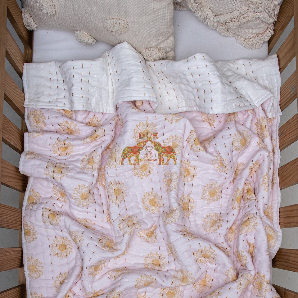 Best Quality Handmade Cotton Quilt for Babies Sunflower Print Versatile Custom Prints Soft Organic Cotton for Hotels