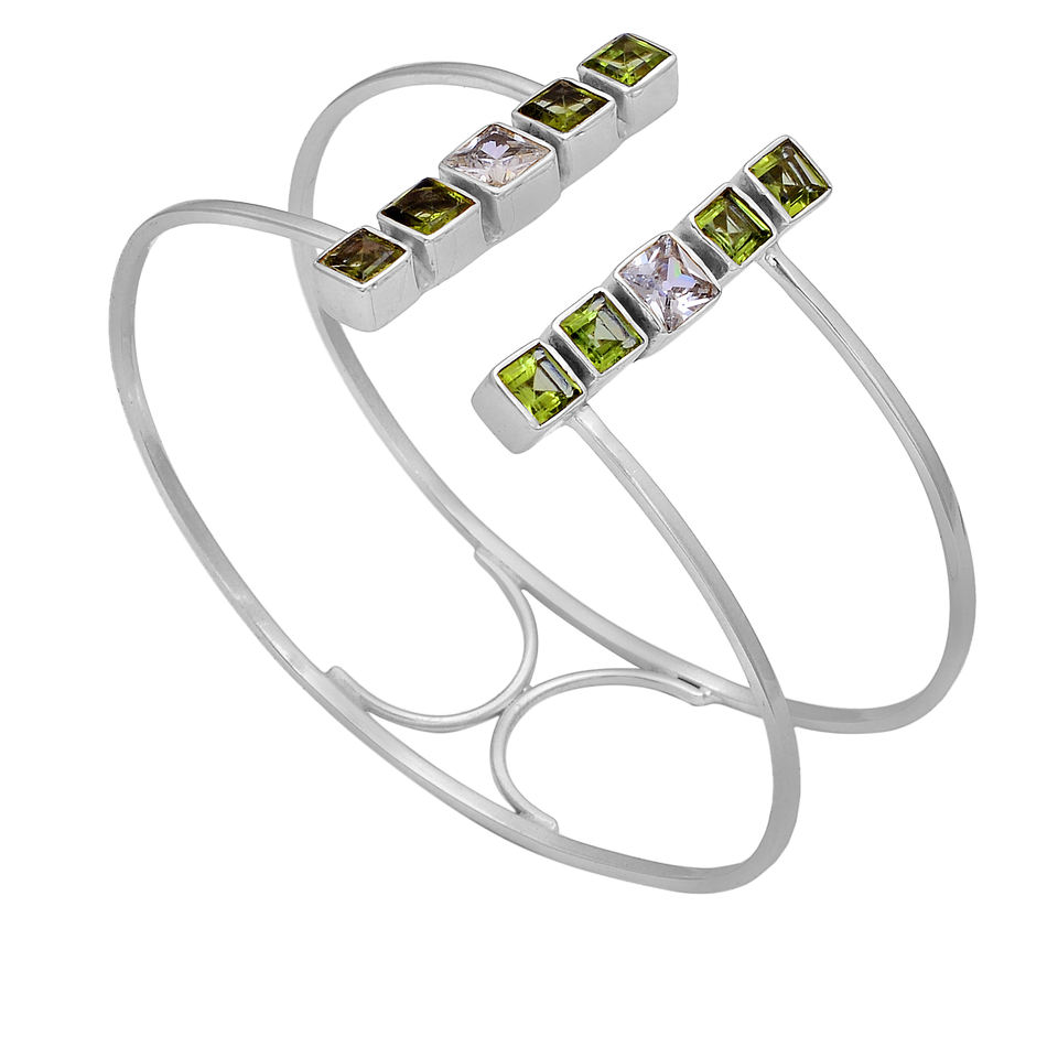 Best Quality Handmade Fine Jewelry-Solid .925 Sterling Silver Bracelet Peridot Crystal Gemstone Gold Plated Gift Casa de Plata