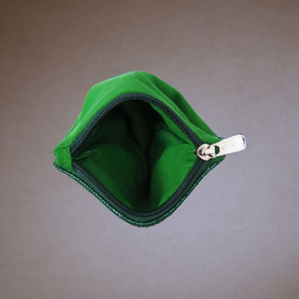 Best Quality Handmade Green Yellow Mini Pouch Square Shapes Coin Purse for Game Day Multiple Cash Money Storage Zipper Closure
