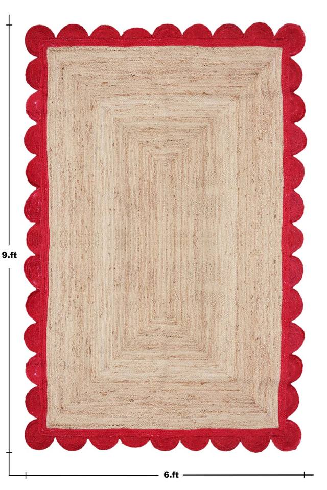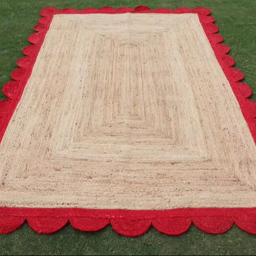 Best Quality Handmade Jute Rug Carpet Red Boundary Scroll Pattern Modern Style Washable Door Mat for Home Direct Indian Picnics