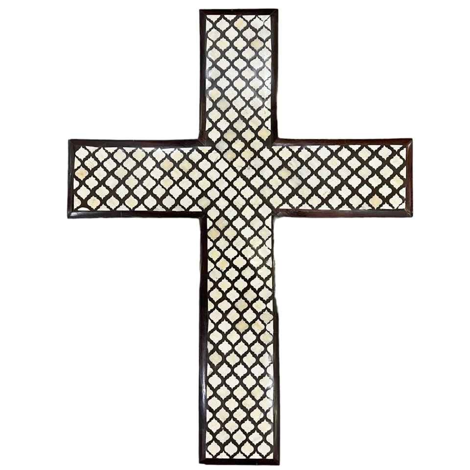 Traditional Mother Pearl Cross for Wall Hanging Handmade Luxury Home Decor for Back School Anniversary Church Altar Decoration