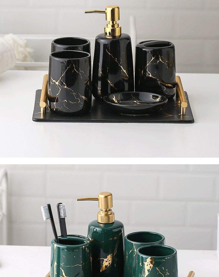 Item:Includes: 1 Tray, 1 Soap Dispenser, 1 Toothbrush Holder, 1 Lid Box.