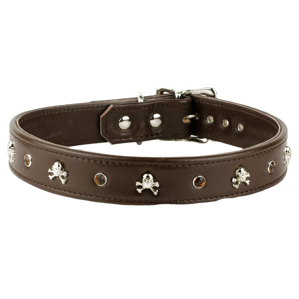 Best Quality Handmade Solid Pattern Genuine Leather Dog Collar with New Designed Concho Work Crystal Studs Manufactured Supplier