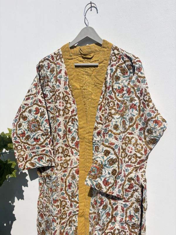 Best Quality Handmade Women's Long Cotton Kantha Quilted Robe Monkey Print Jacket for Autumn Season Beach Wear Dress