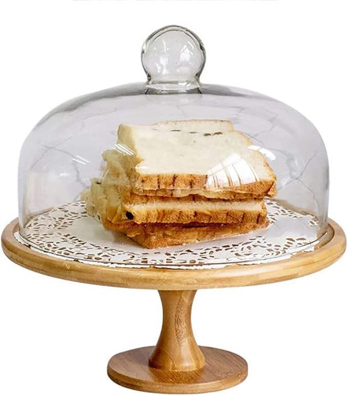 Best Quality Handmade Wooden Cake Stand with Glass Dome Cover for Dessert Pastry and Cupcake Display Available at Good Price