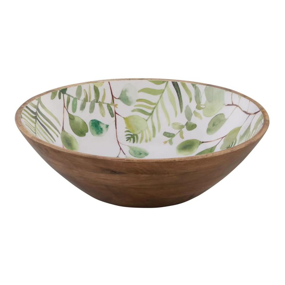 Best Quality Handmade Wooden Enamel Printed Bowl on Wooden Stand Serving Bowl for Table Decoration