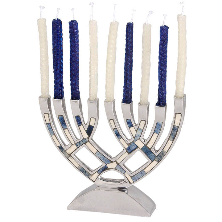 Best Quality Hanukkah Menorah Aluminum Candle Holders Blue White Inlay Home Decor Christmas India's Other Candle Holders Candle