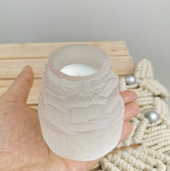 Best Quality Hot Sale Bulk Natural Selenite Iceberg Candle Holder 8 cm & 10 cm Crystals Decoration