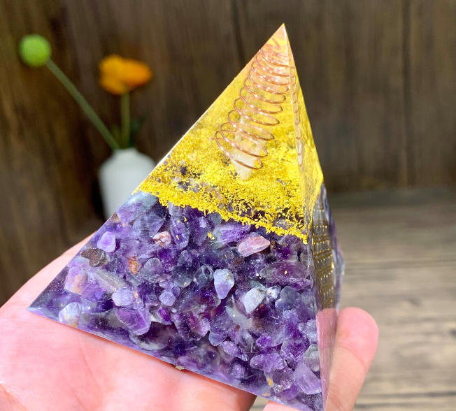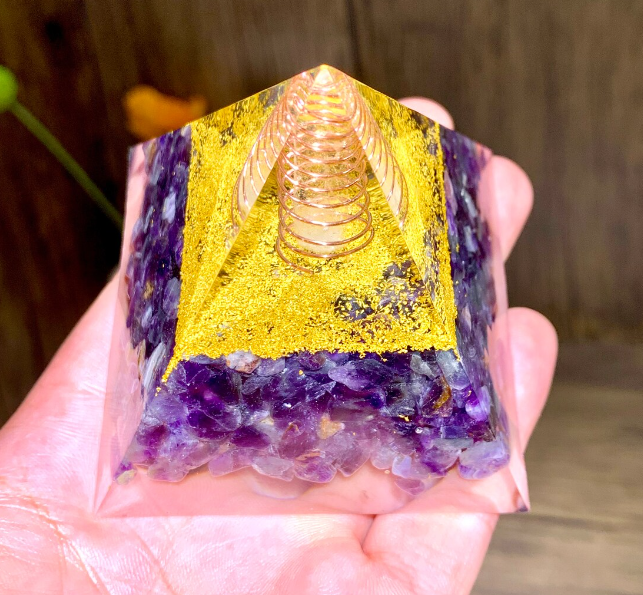 Product name:Amethyst Chippings Copper Ring Orgone Pyramid