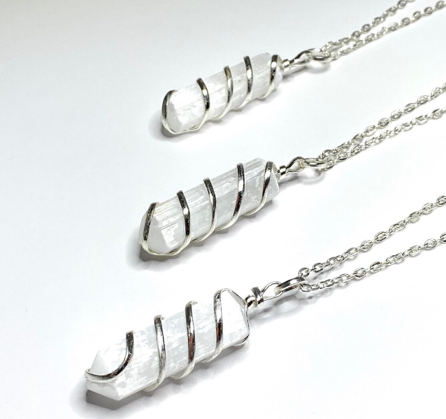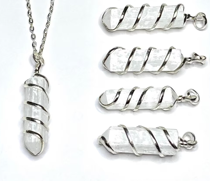 Best Quality Hot Sale Bulk Natural Selenite Gemstone Pendant Wire Wrapped with Complimentary Chain for Jewelry Making
