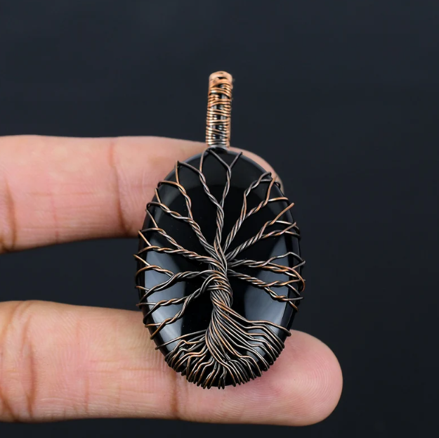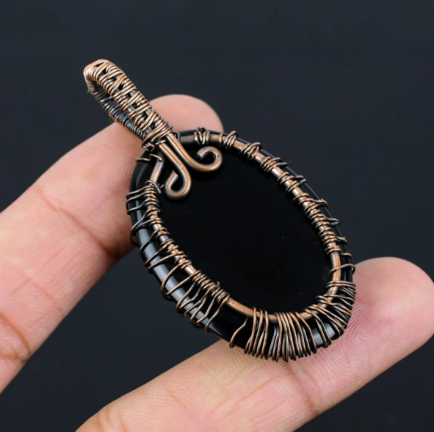 Name:Black Onyx Pendant Copper Wire Wrapped Gemstone Pendant