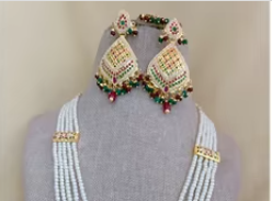 Best Quality Jadau Gold Plated Moissanite Imitation Pearl Necklace Set with Earrings Tikka for Women Engagement Wedding Jewelry