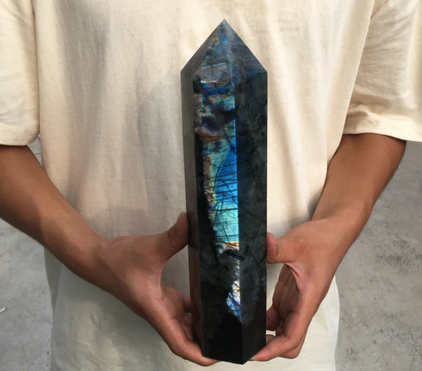 Best Quality Labradorite Quartz Crystal Obelisk Wand Point Healing Crystal Wand Point Crystal Tower Home