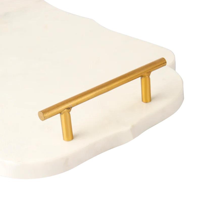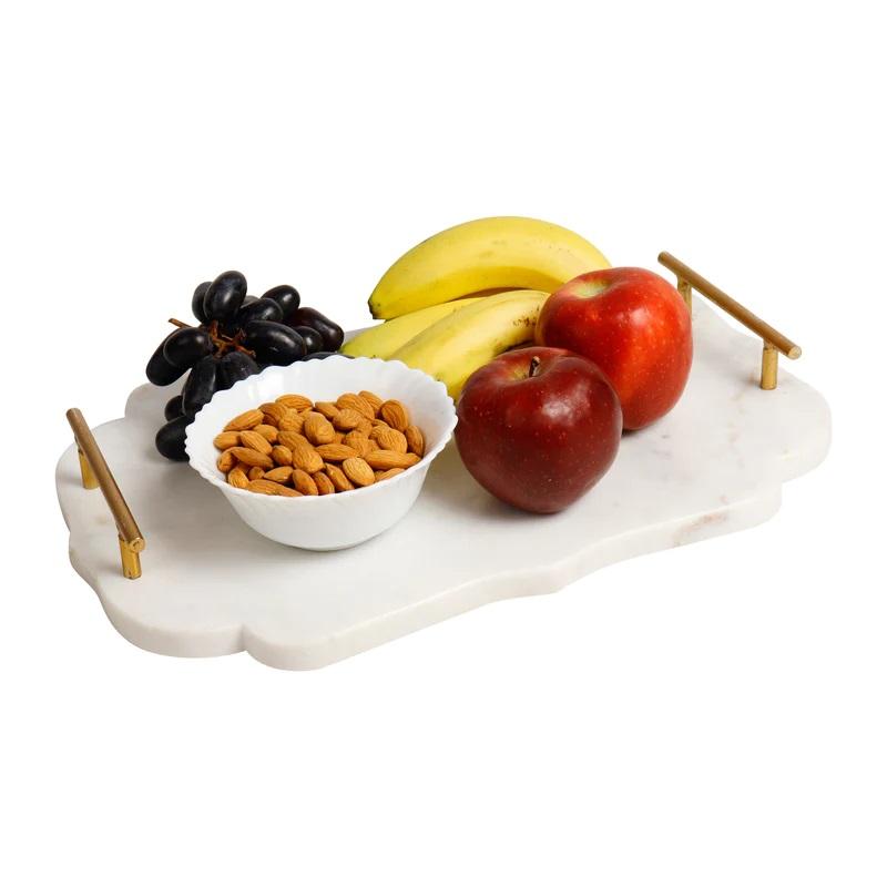 Best Quality Large Natural Marble Stone Tray Modern Brass Handle Home Decorative Oval Tray Food Serving Kitchen Resin Steel