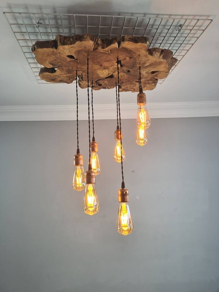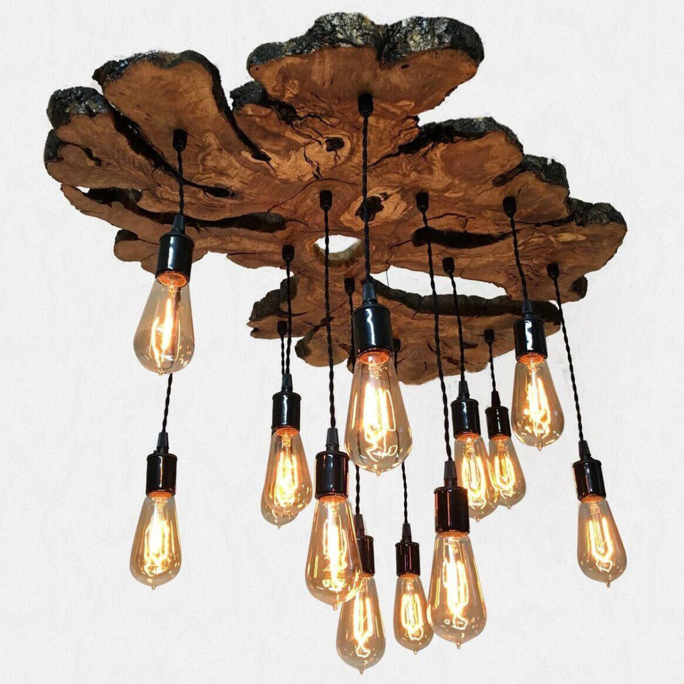 Best Quality Live Edge Olive Wood Slab Pendant Chandelier, Rustic Hanging Lighting For Dining Room, Kitchen Island, Pool Room
