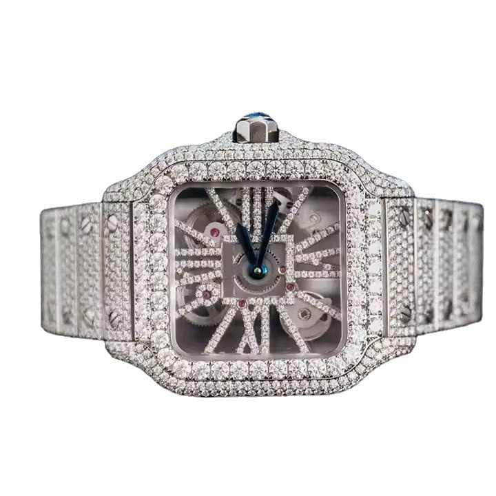 Best Quality Luxury Moissanite Watch Stainless Steel Band Sapphire Glass Quartz Movement Waterproof Digital Strong Case Smooth