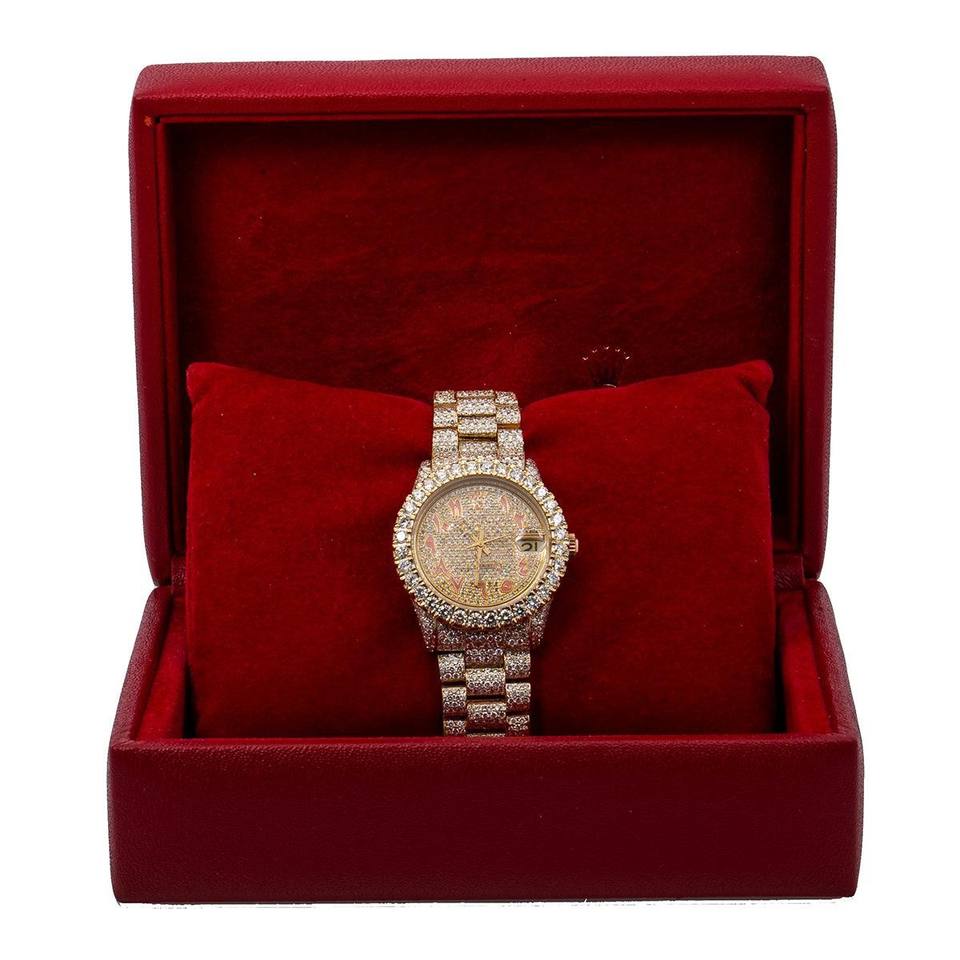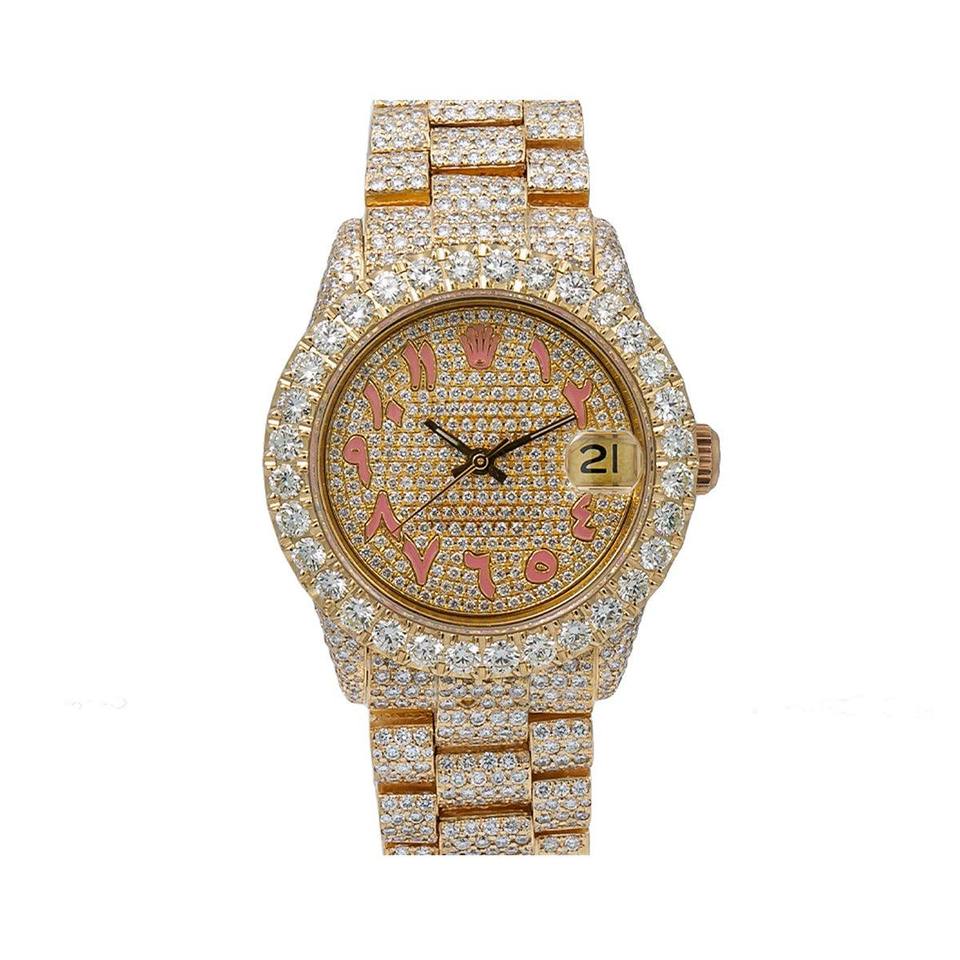 Best Quality Luxury Quartz Antique Charm Heavily Customized Two Tone Moissanite Diamond Red Arabic Numeral Dial 41mm Dial Watch