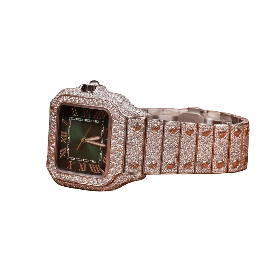 Best Quality Luxury Steel Band Quartz Movement Green Face Watch Sapphire VVS Clarity Moissanite Watches Diamond Water Resistant