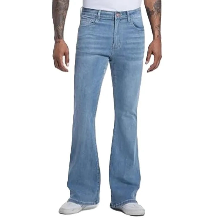 Best Quality Men's Bell Bottom Slim Fit Denim Pants Custom Stretch Customize Stacked Flare Jeans For Men's Sun Fade Wash