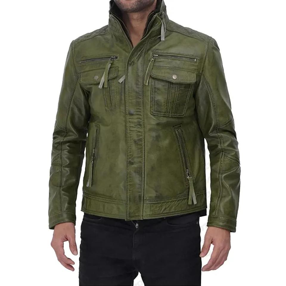 Best Quality Men's Stand Collar Zipper Leather Jacket High Quality Winter Fabric Hooded in All Colors and Sizes New Condition