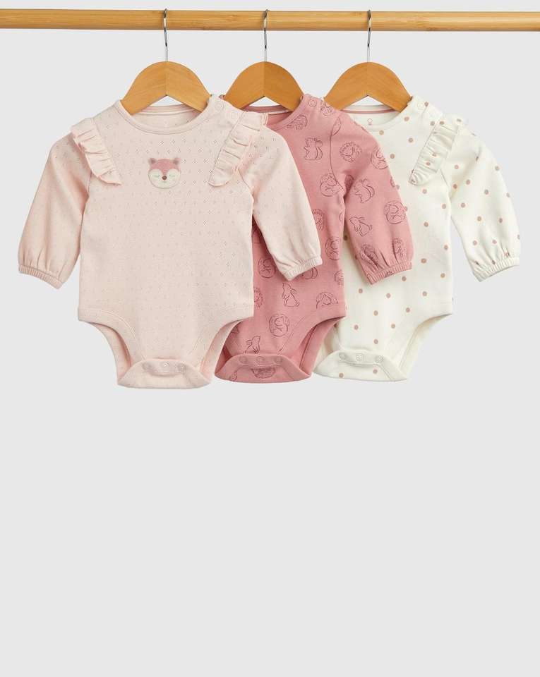 Best Quality Mother Care Girls My First Woodland Long Sleeves Bodysuits Pack Of 3 Comfortable And Durable Jumpsuit Baby Clothes