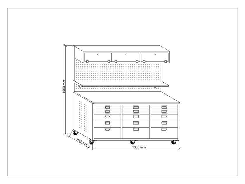 H: 1900 mm W: 1860 mm D: 482 mmDimension