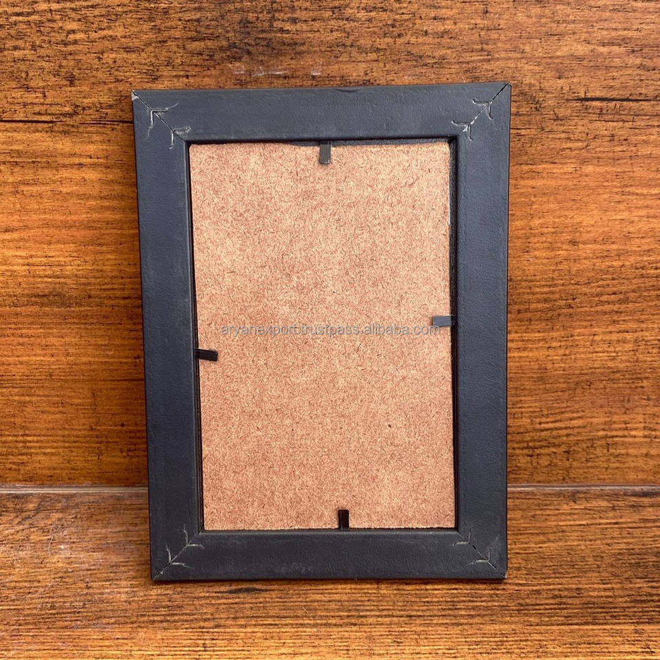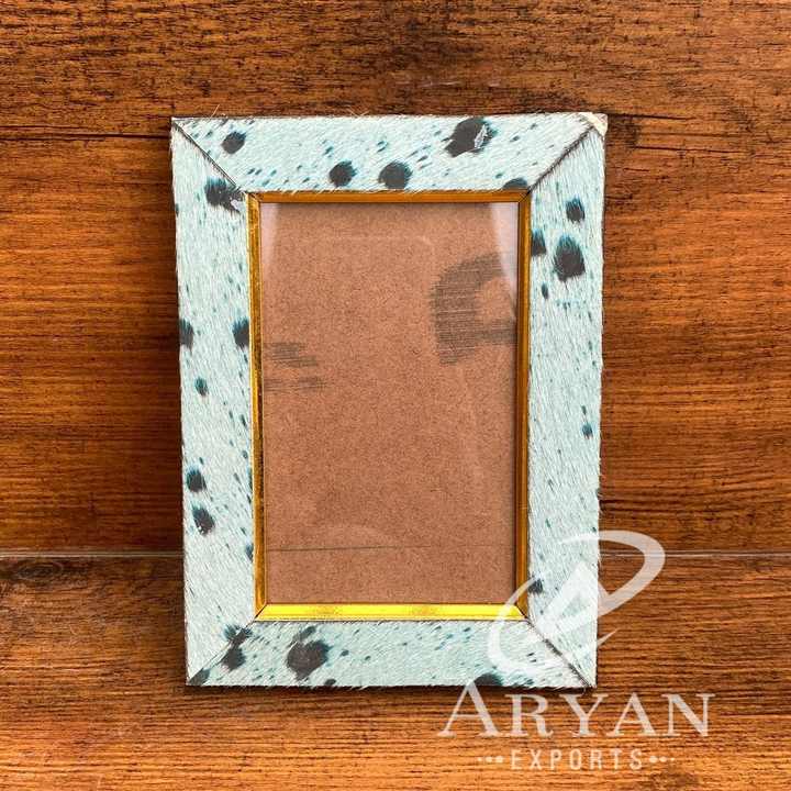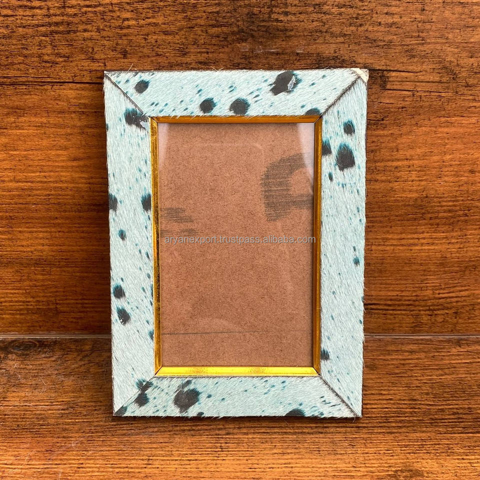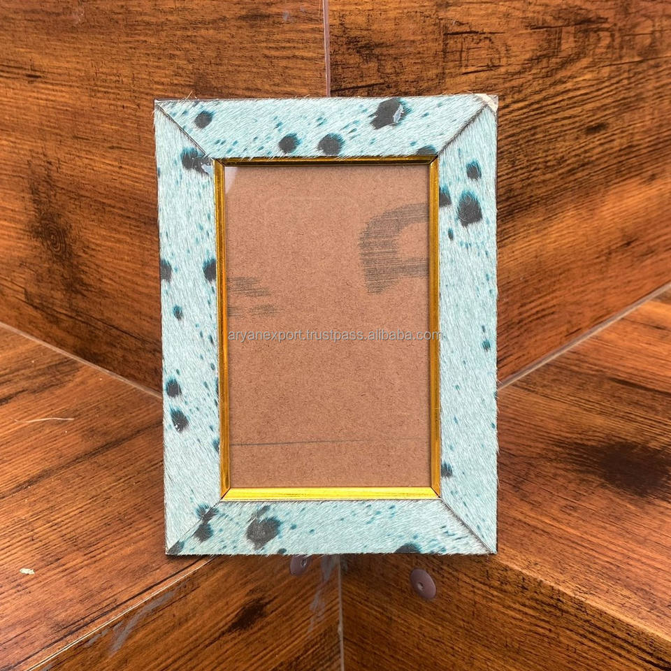 Best Quality Multifunctional Custom Genuine Cowhide Leather Photo Frame with Blue Hair on Wall Decoration Leather Photo Frame
