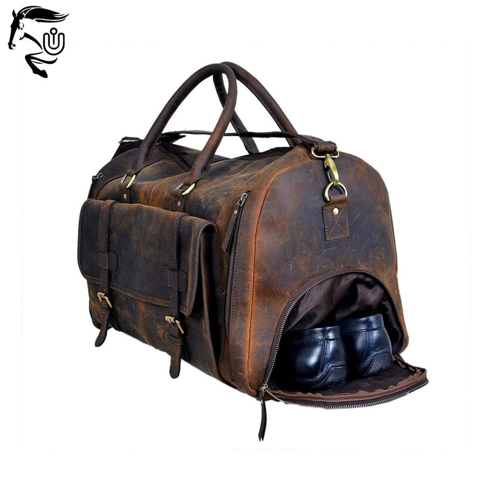 Best Quality OEM Slim Fitted Genuine Leather Duffle Bag Large Capacity Durable Multi-Functional Casual Travel Duffle Bag Zipper
