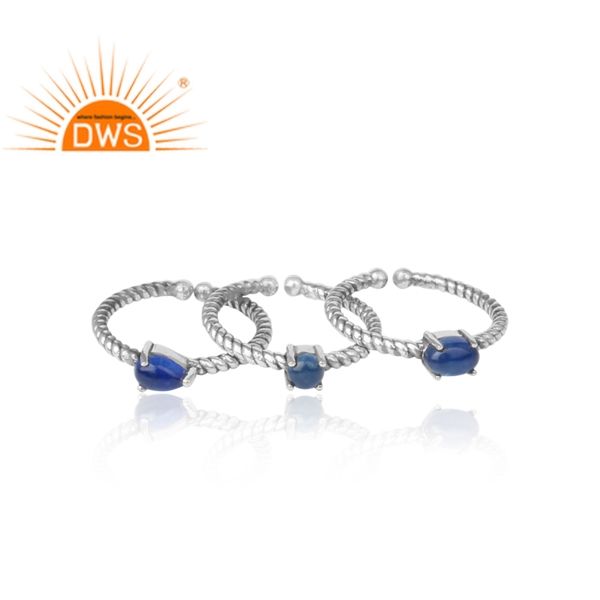 Best Quality Oxidized Sterling Silver Natural Blue Aventurine Quartz Gemstone Set of 3 Twisted Ring Custom Jewelry for Women