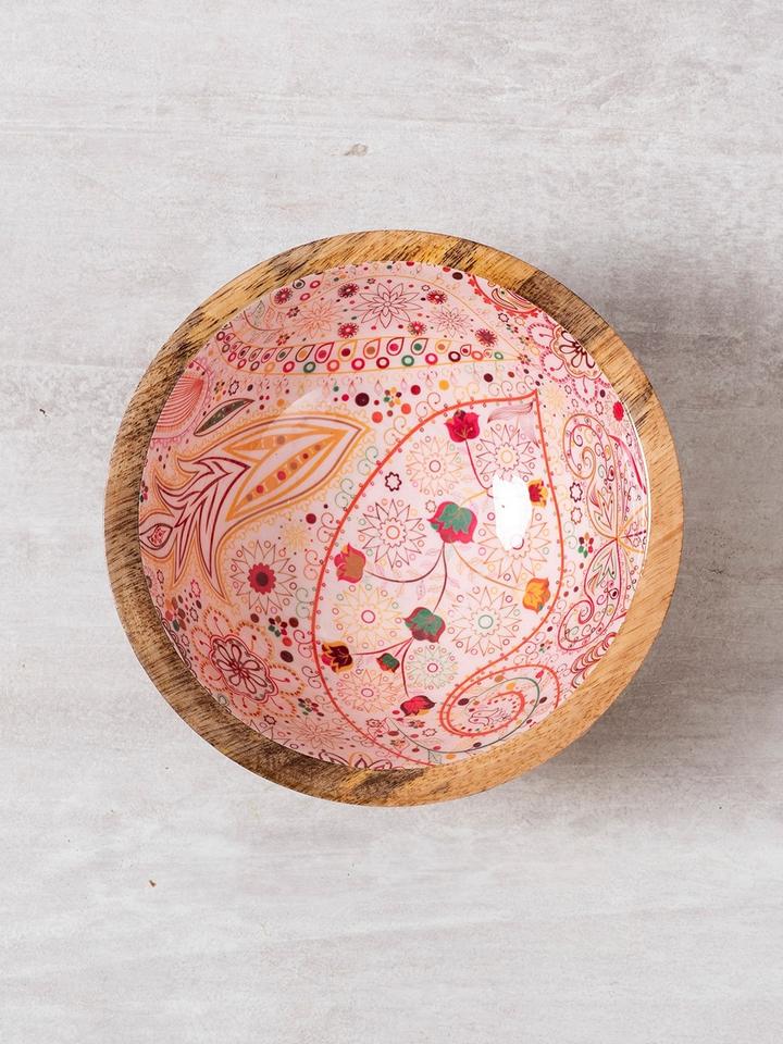 Best Quality Pink Inlay Small Wooden Bowl with Natural Mango Finished Customised for Candle Making and Mixing Salad