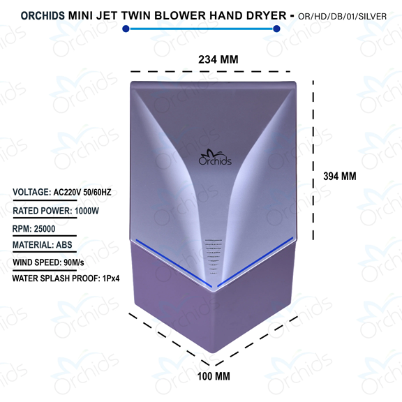 Product Name:Orchids Mini Jet Twin Blower Hand Dryer 220V