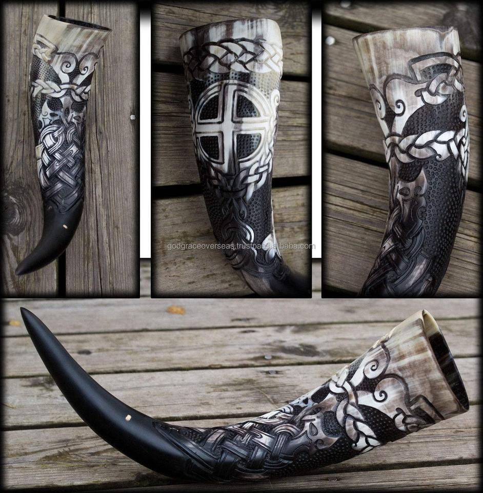 Best Quality Polished Carved Viking Drinking Beer Horn Mug Eco-Friendly Wholesale Price Buffalo Ox Horn Decoration