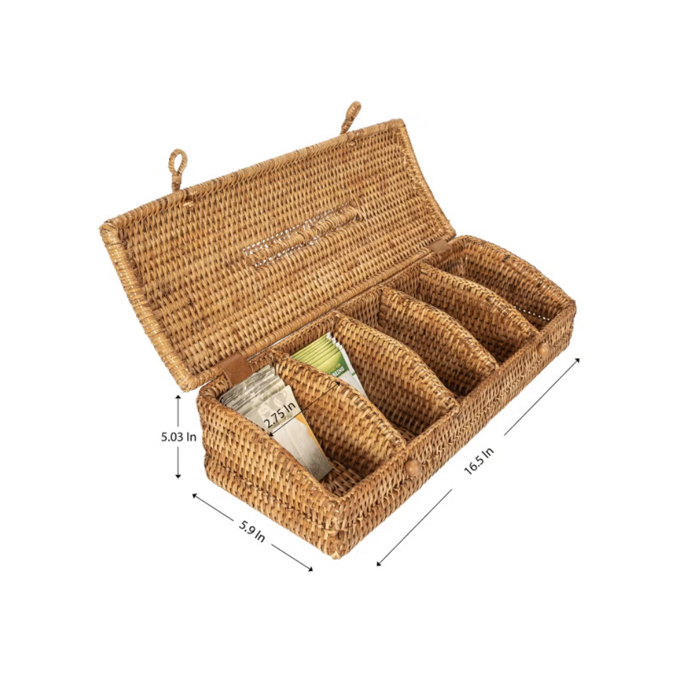 Best Quality Rattan 5 Section Tea Box Organization with Lid Organizer Storage Boxes Made by VgreenArt from Vietnam