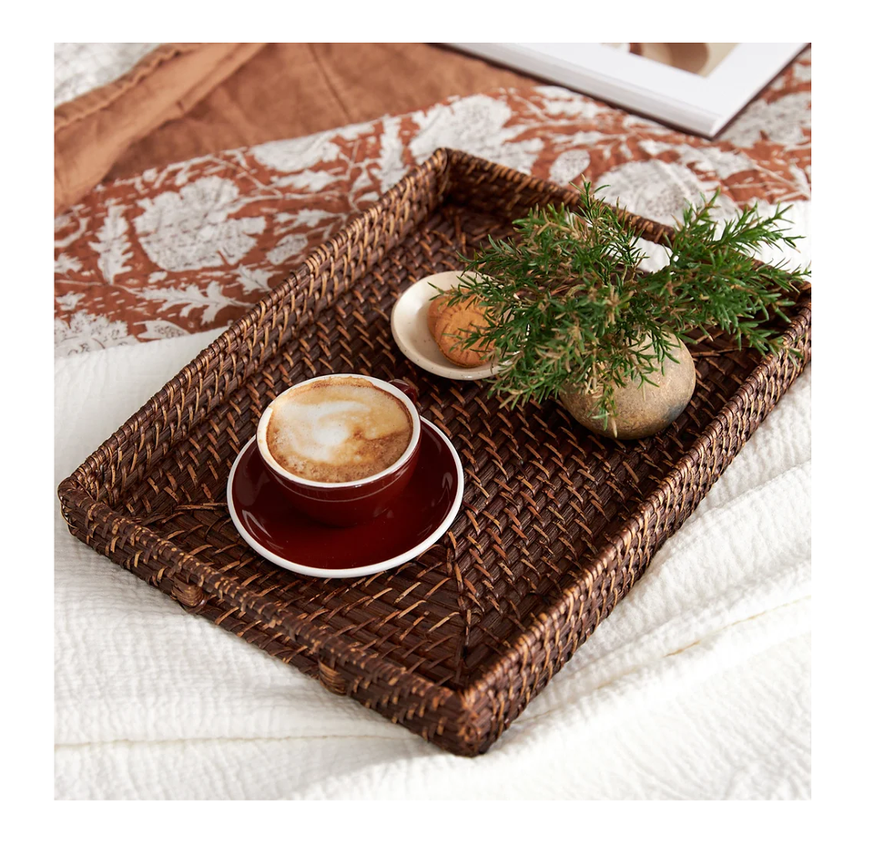 Best Quality Rattan Serving Storage Tray For Coffee Snack Breakfast Multipurpose Modern Wicker Vanity Tray For Kitchen Tableware