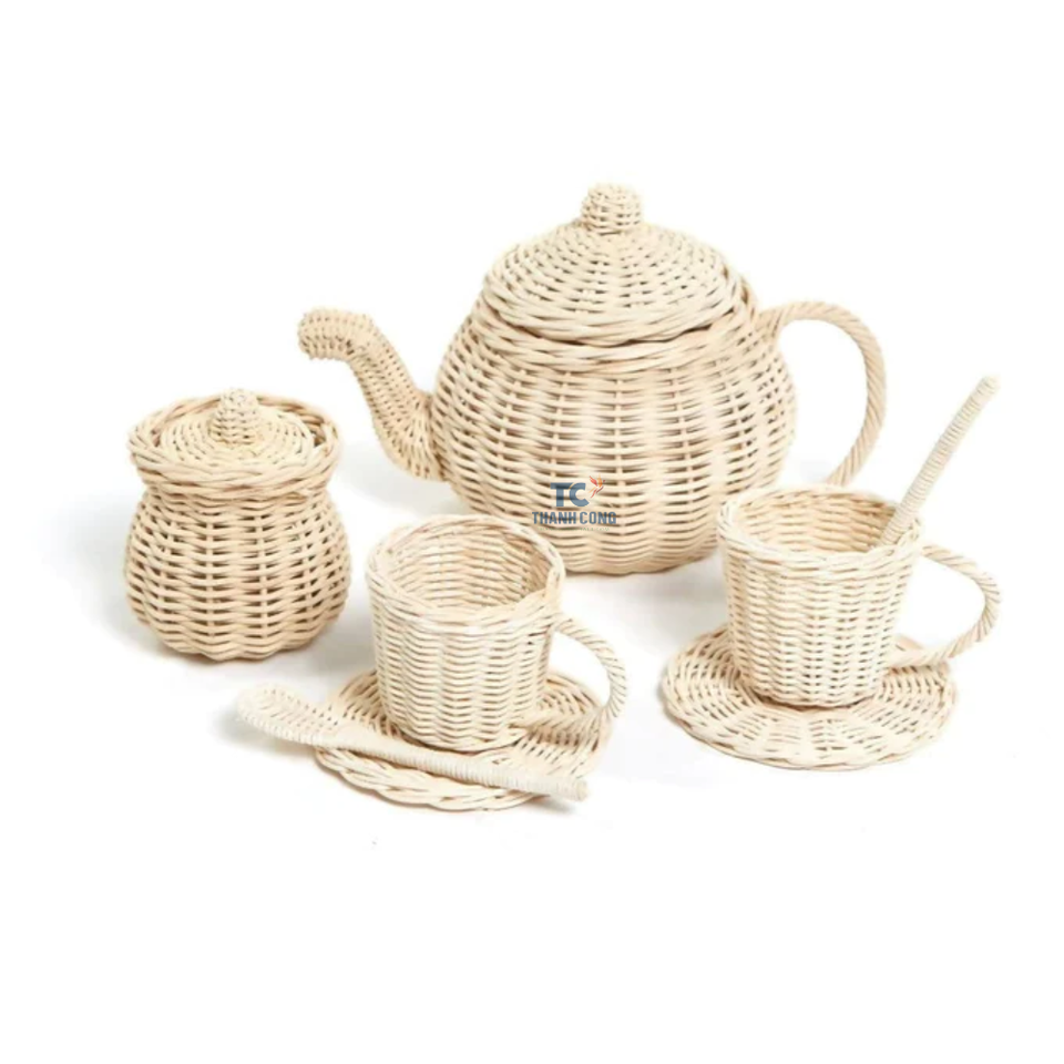 Best Quality Rattan Tea Set Play With Children's Room Tea Service Imaginative Pretend Play Educational Toys Vietnam Factory