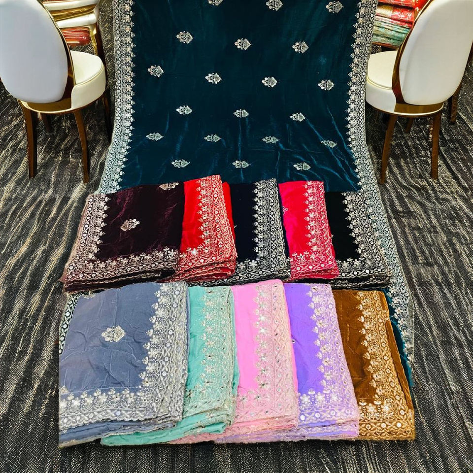 Best Quality Royal Luxury Velvet Shawls Handmade Winter Fashion for Women Sequin work Direct From India wholesale manufacturer