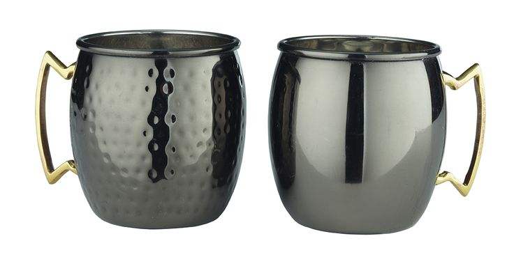 Best Quality Set for Two Copper Mugs Black Coated Hammered Designing Amazing Made in India Copper Moscow Mule Mugs Beer Cups