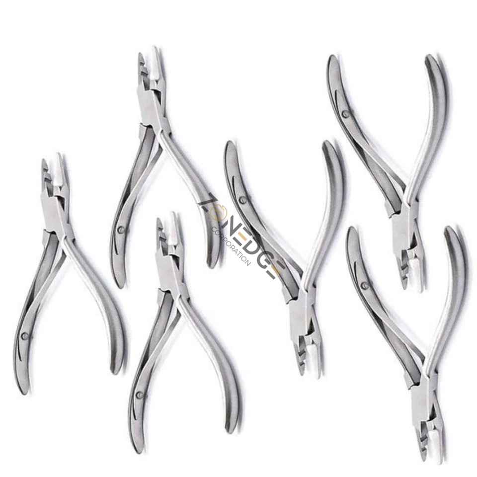 Best Quality Set of 6 Hair Extension Pliers Stainless Steel Silver Multi Functional 2 Hole Tool for Micro Ring and Loop Hair