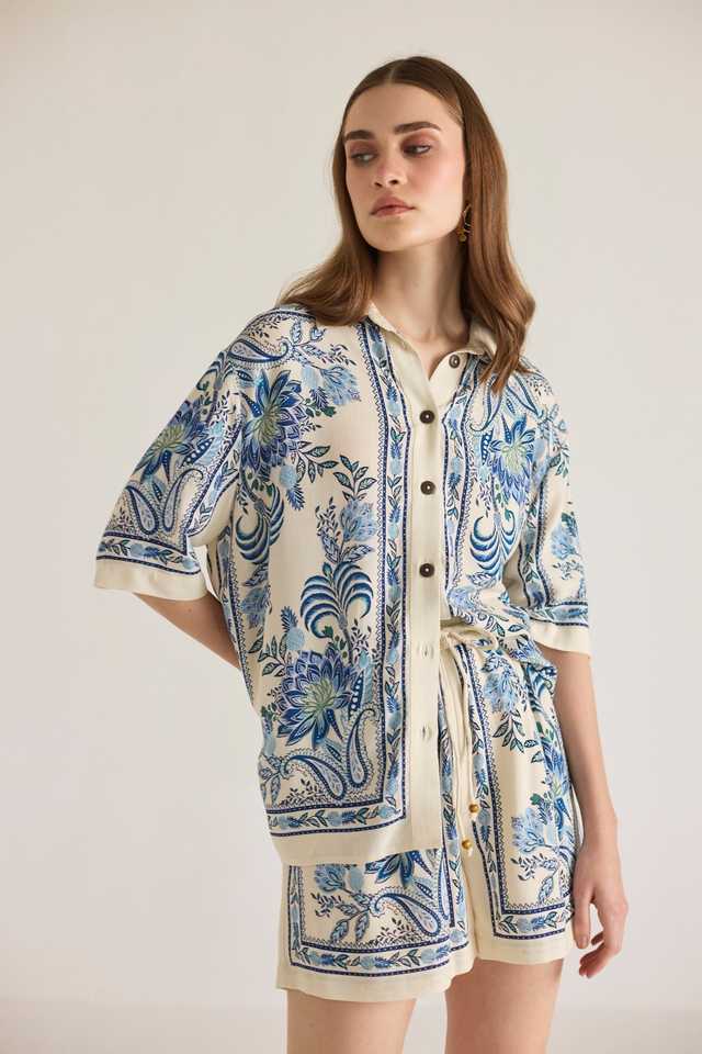Product Name:Floral Printed Pure Cotton Sequinned Top