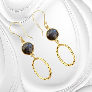 Product Name:Natural Labradorite Silver Gold Plated Drop Earring