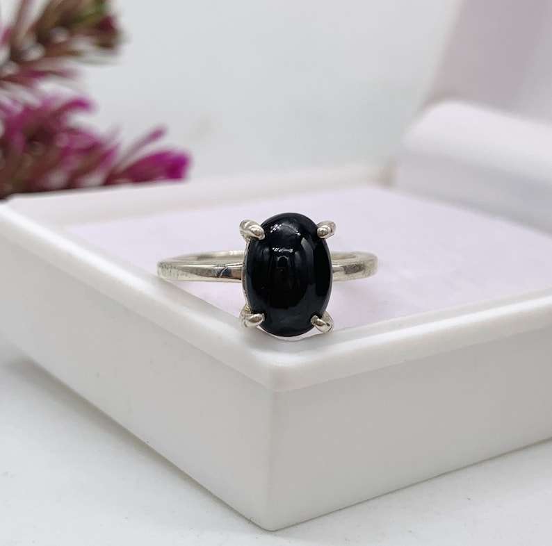 Best Quality Solid 925 Sterling Silver Women's Ring Handmade Natural Black Onyx Oval 7x9mm Prong Setting Simple Band Jewelry