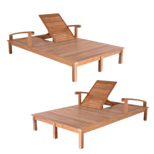 Best Quality Solid Teak Wood Sun Lounger for Outdoor Furniture Double Sun Bed Patio Lazy Chaise Daybed for SALE
